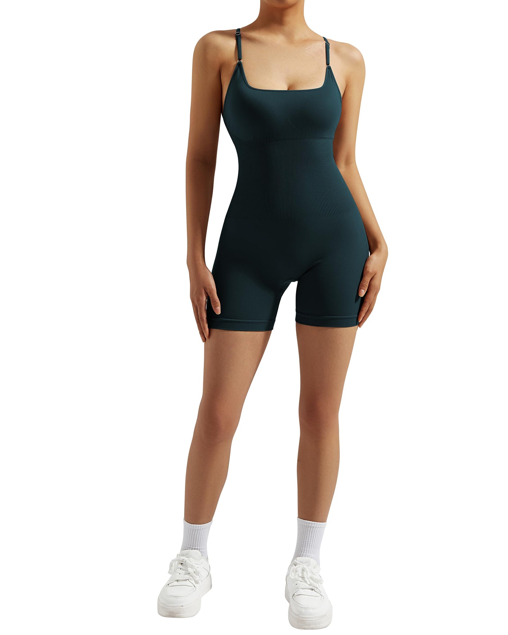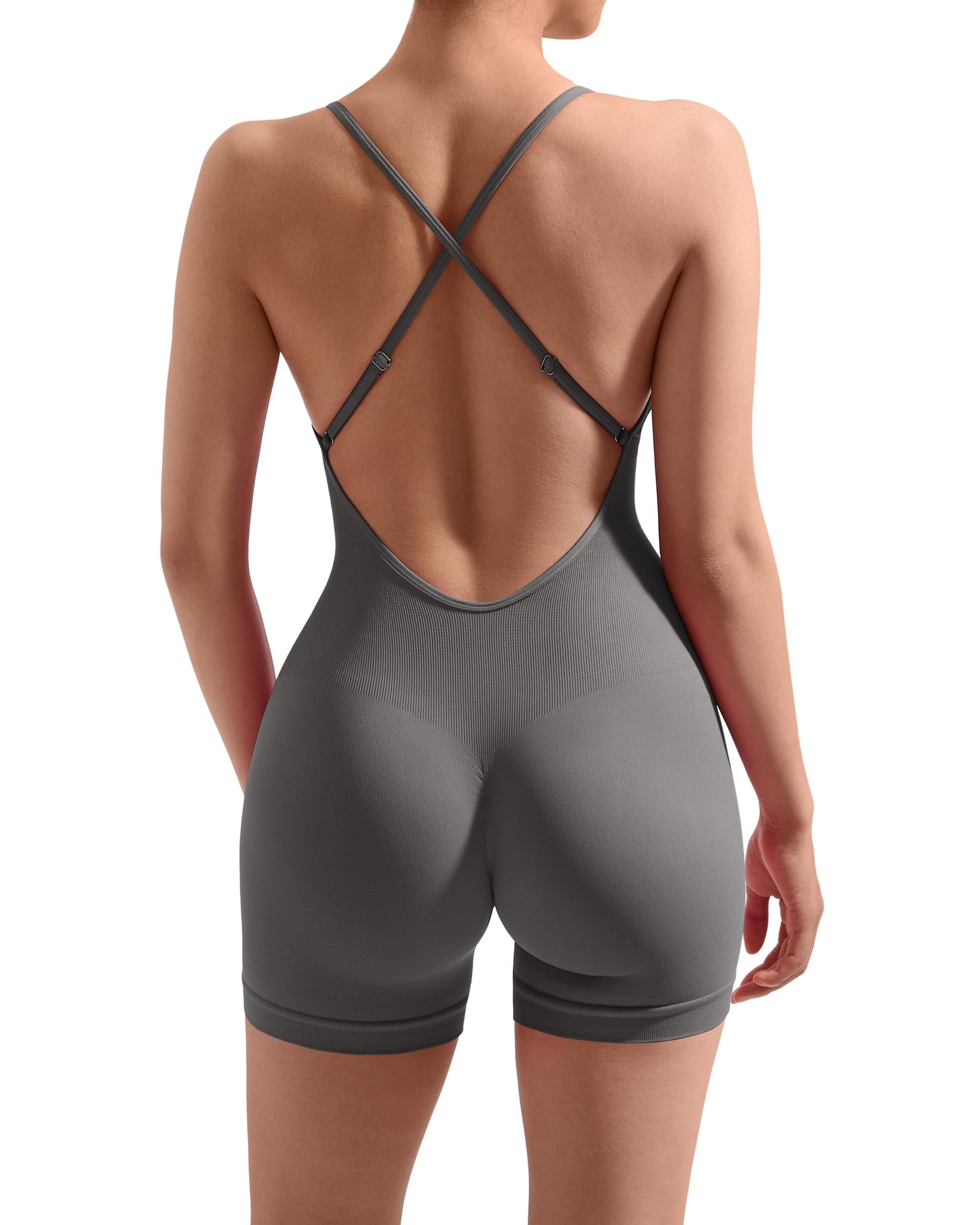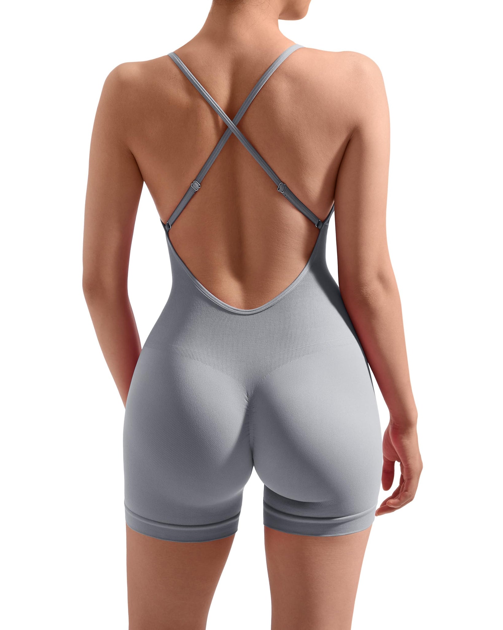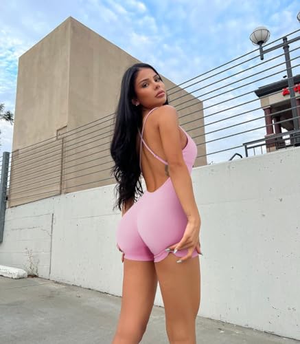 Sexy Backless Jumpsuit: Criss cross back low cut jumpsuit, adjustable spaghetti straps, open back bodysuit tops, sleeveless scoop neck, built in removable padded bra, slimming yoga jumpsuit shorts.Butt Lifting Bodycon Romper: Contouring butt lift rompers with compression tight shorts, sexy scrunch booty jumpsuits highlights the hip curve, squat proof workout romper.Tummy Control Gym Romper: Ribbed seamless sculpting jumpsuit for a sleek look. Stretch fitted, no camel toe. Flatten tummy one piece shorts romper, 4 way stretch, moisture wicking, non see through.