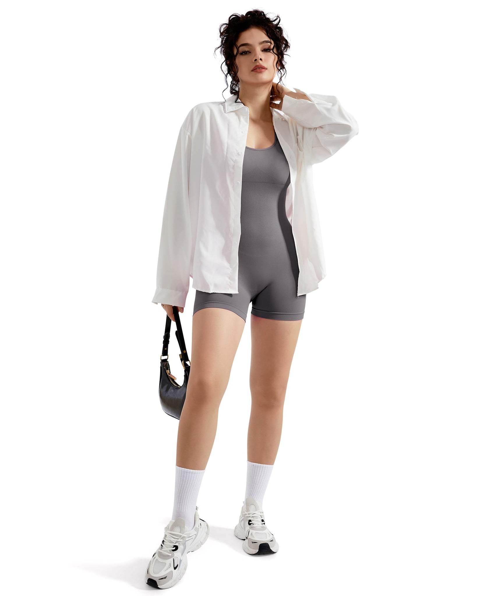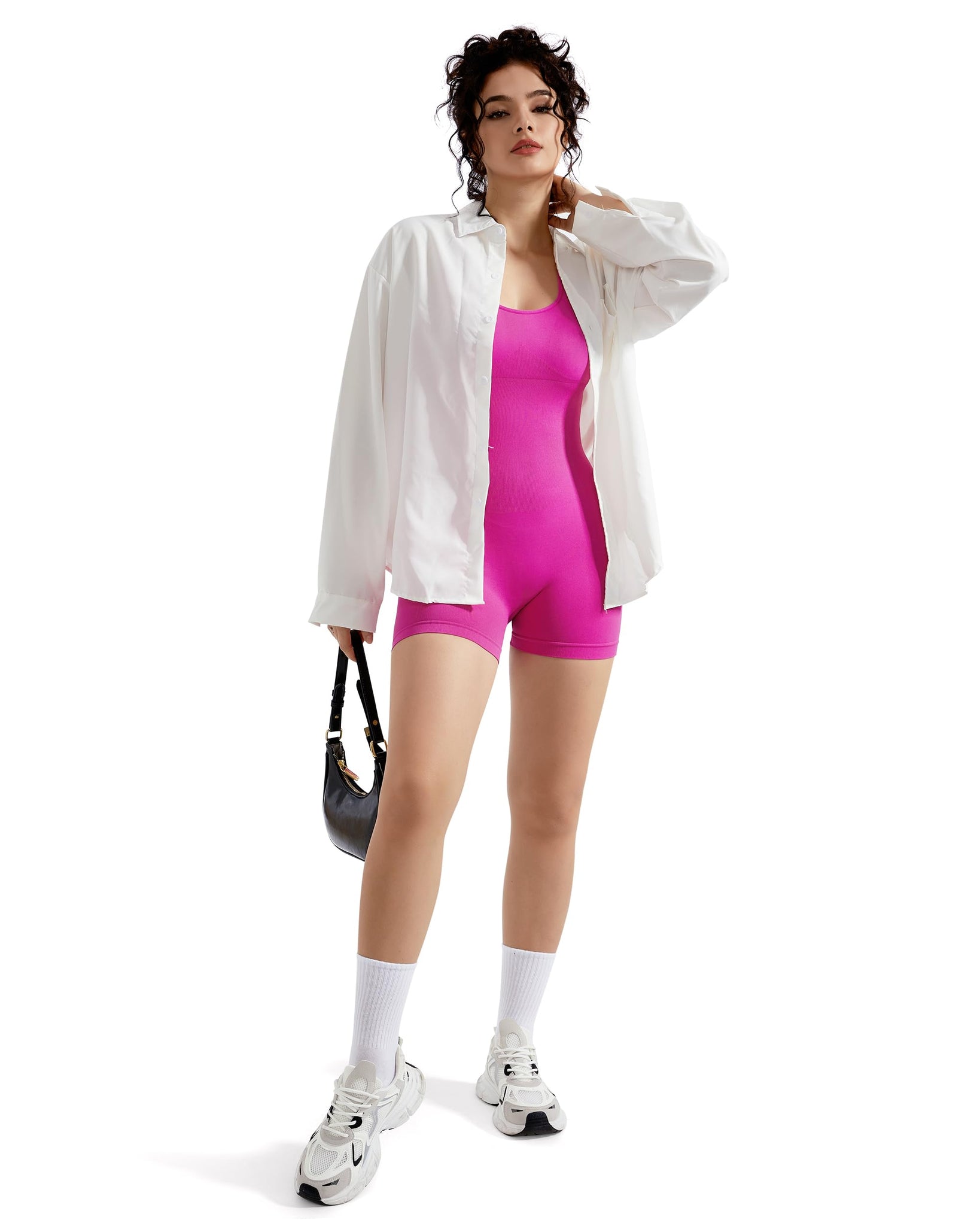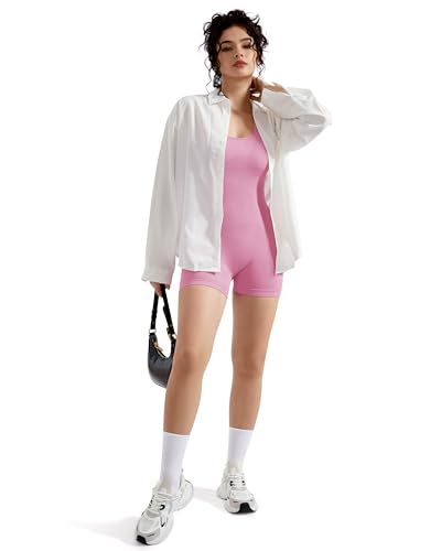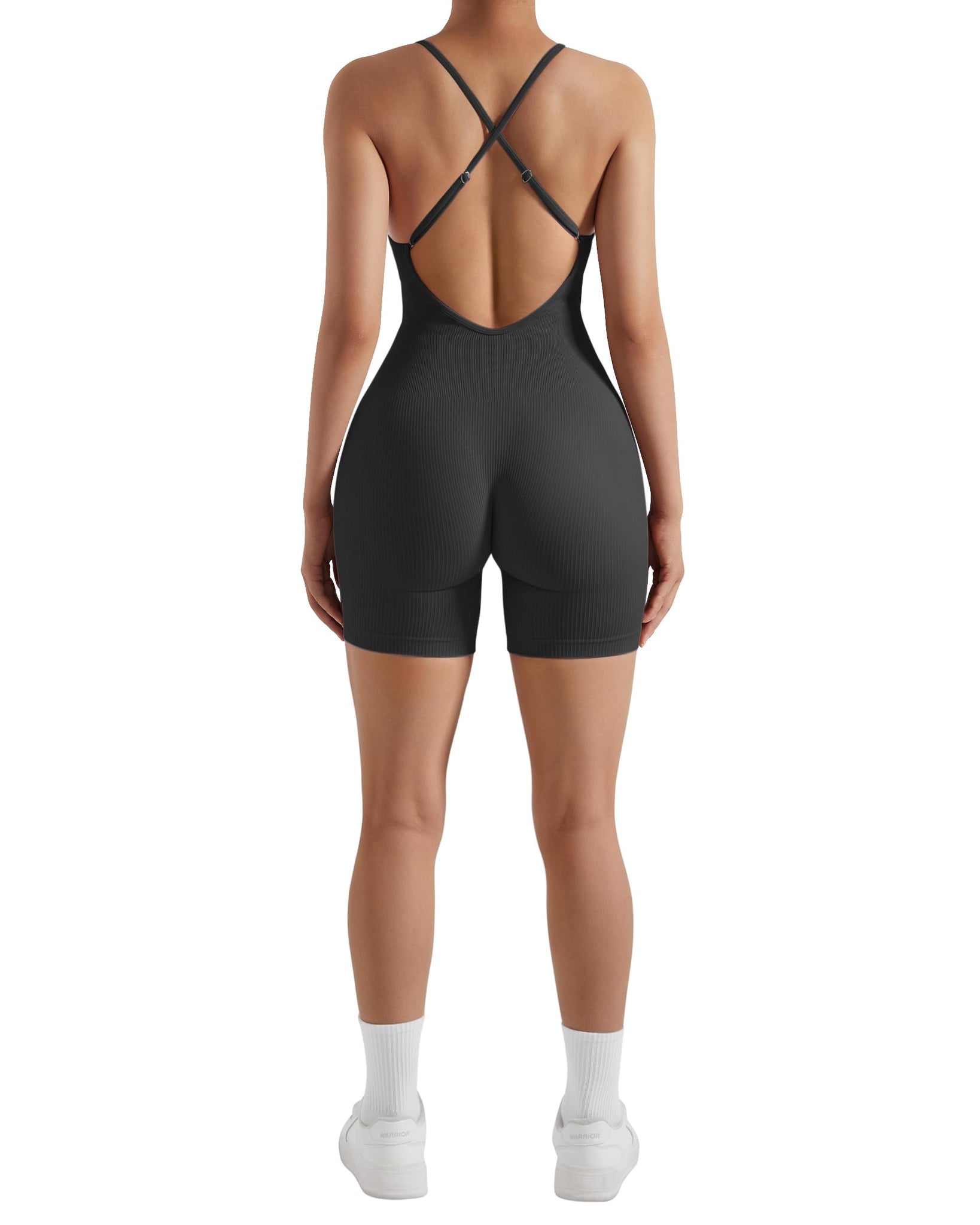 Sexy Backless Jumpsuit: Criss cross back low cut jumpsuit, adjustable spaghetti straps, open back bodysuit tops, sleeveless scoop neck, built in removable padded bra, slimming yoga jumpsuit shorts.Butt Lifting Bodycon Romper: Contouring butt lift rompers with compression tight shorts, sexy scrunch booty jumpsuits highlights the hip curve, squat proof workout romper.Tummy Control Gym Romper: Ribbed seamless sculpting jumpsuit for a sleek look. Stretch fitted, no camel toe. Flatten tummy one piece shorts romper, 4 way stretch, moisture wicking, non see through.