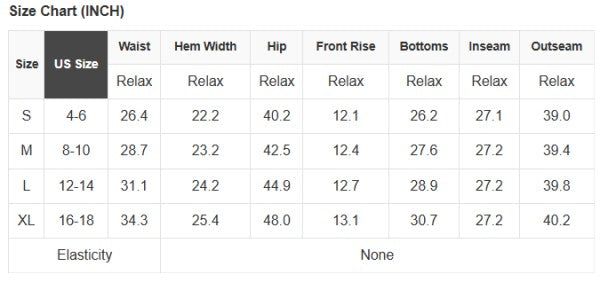 • XL: (Waist), (Hips), (Inseam), (Length)