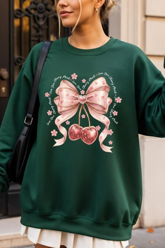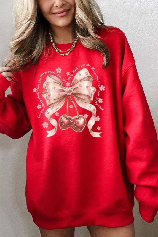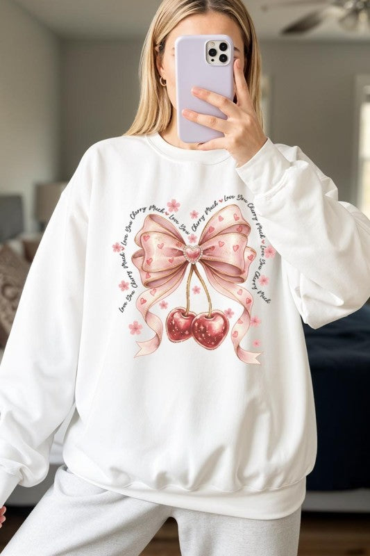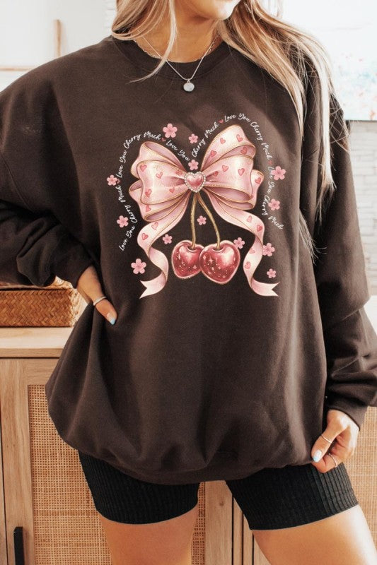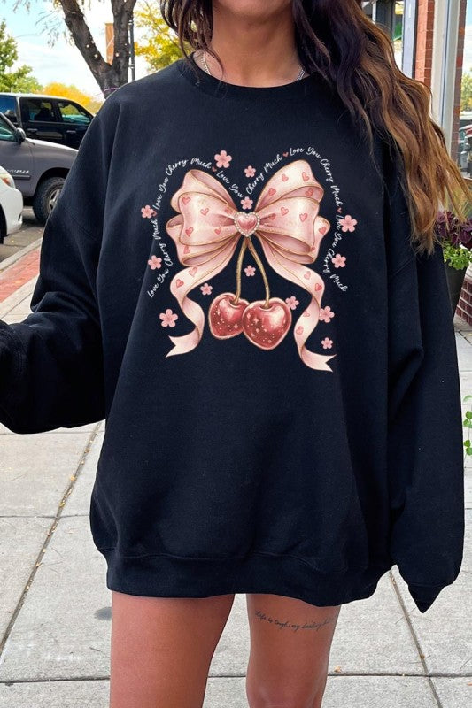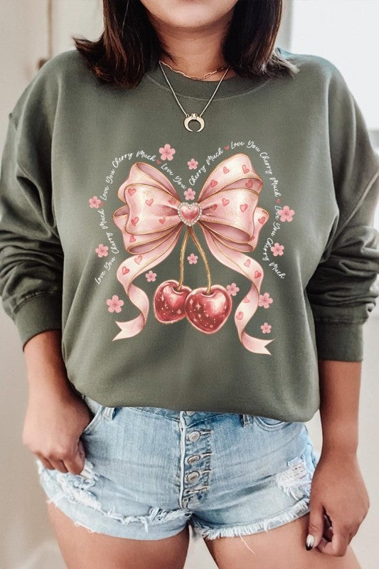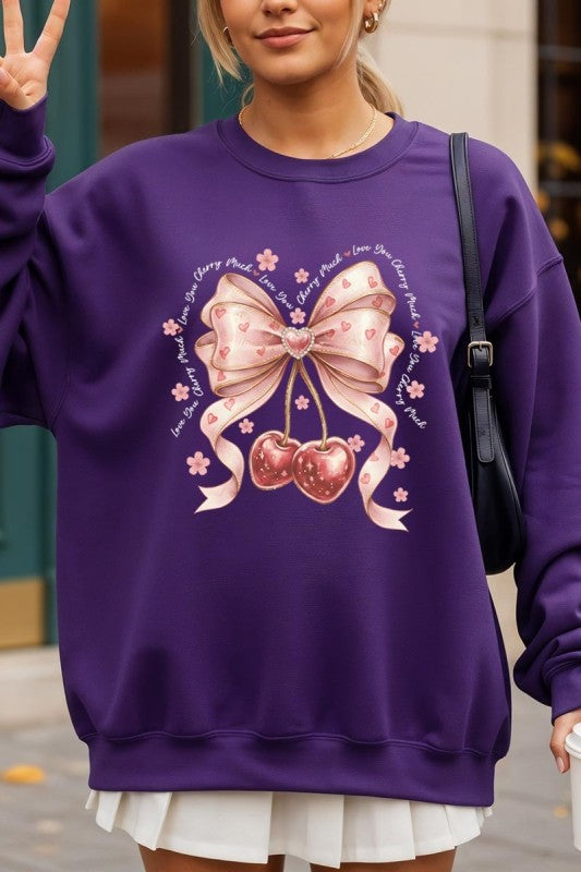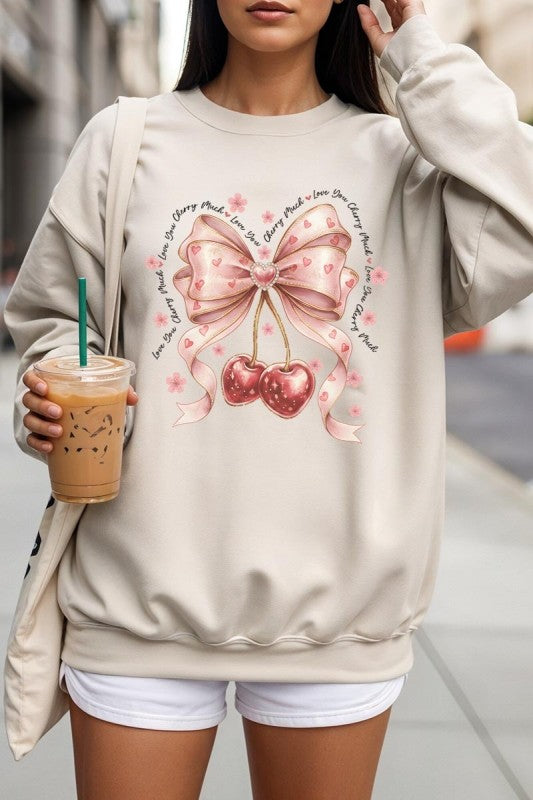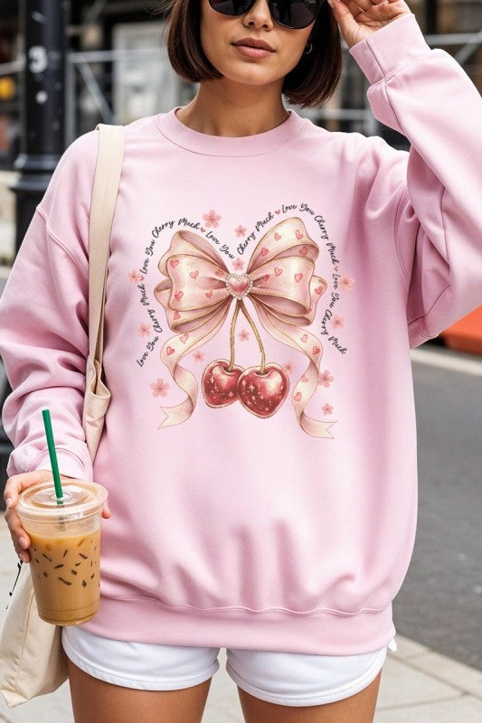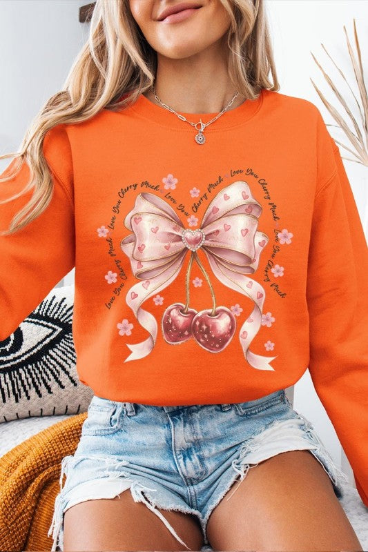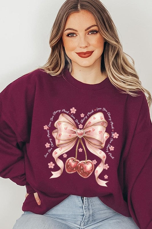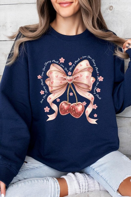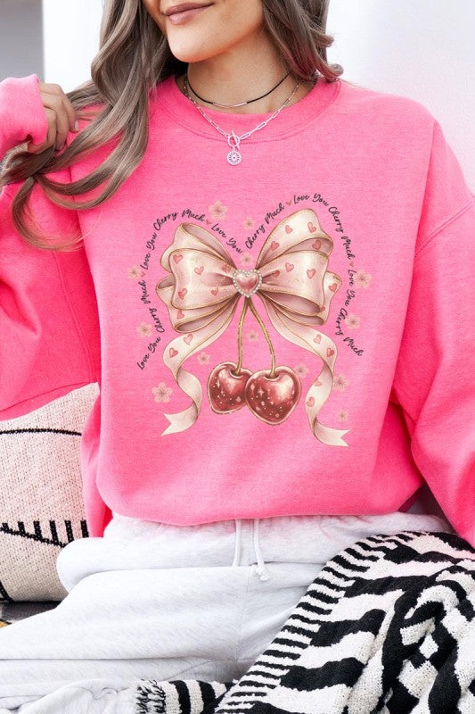 love you cherry much tee, cherry valentine shirt, cute cherry bow graphic, girly sweet cherry top, kawaii fruit valentine tee, soft pink cherry illustration, february boutique graphic tee, adorable valentine aesthetic, sweet love cherry design, trendy cherry valentine Graphic Fleece Sweatshirt.