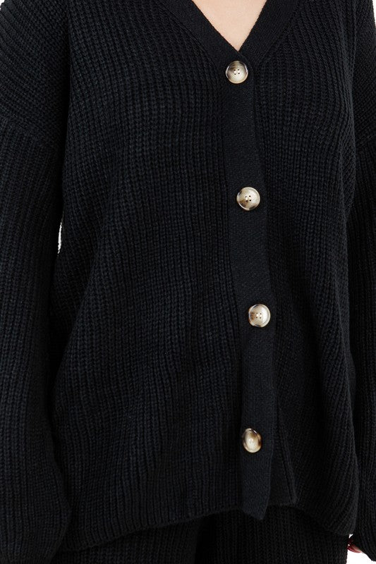 Indulge in our irresistible "Sweater Pants Set" featuring a seductive cardigan with elongated sleeves and alluring v-neckline. The elasticized waist trim offers perfect contouring while the flowing wide-leg pants create an effortlessly chic silhouette. Elevate your casual wardrobe with this must-have combination that transitions seamlessly from lounging to stepping out.
