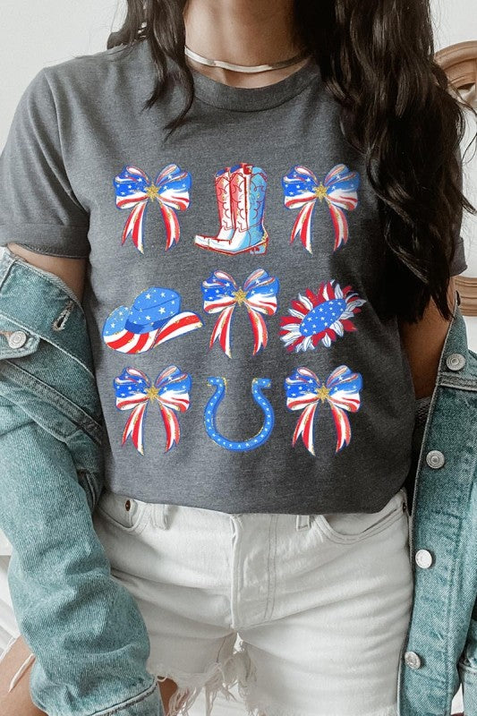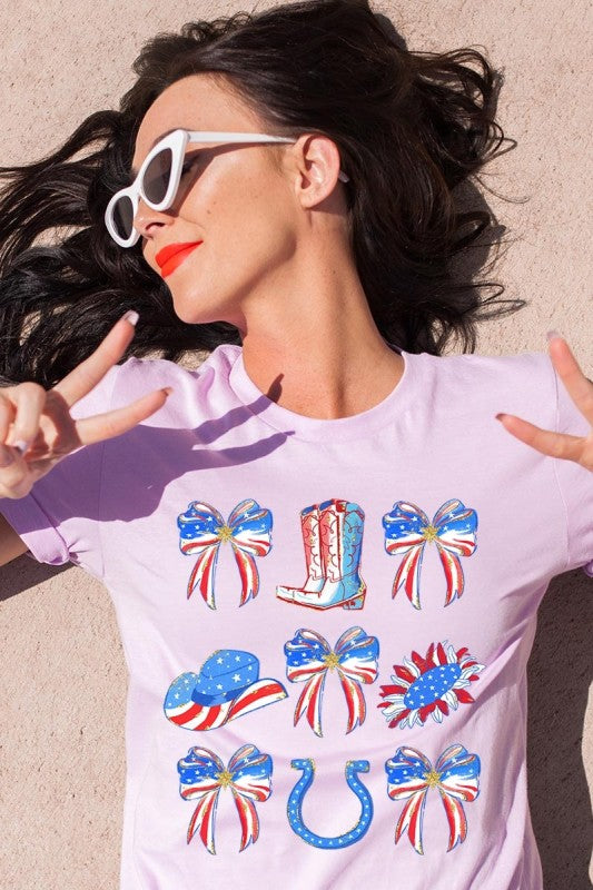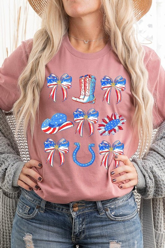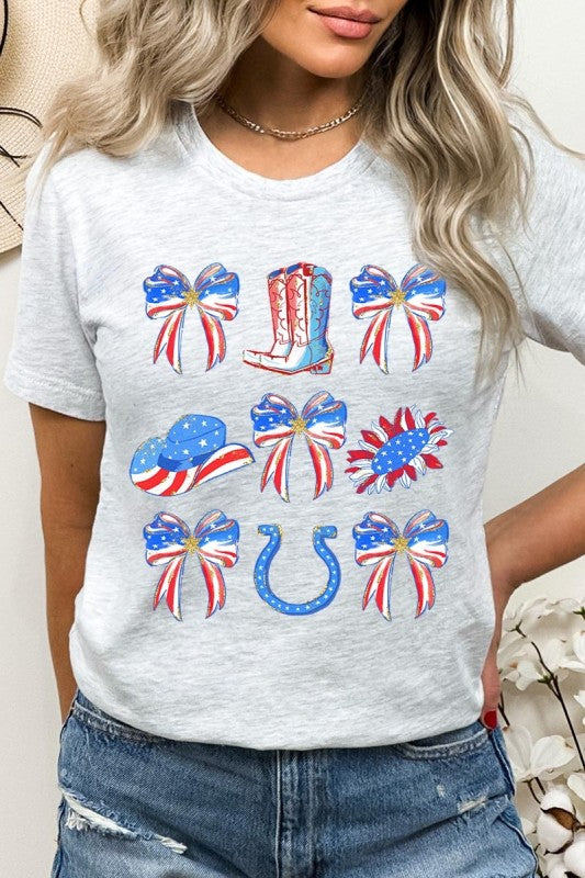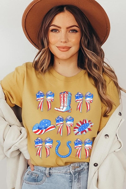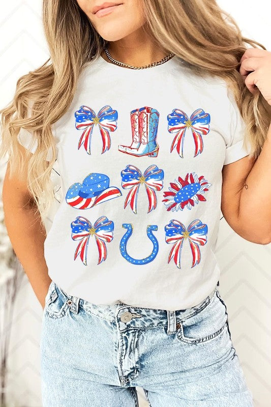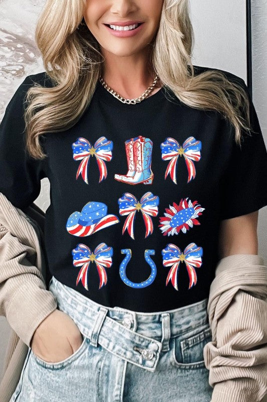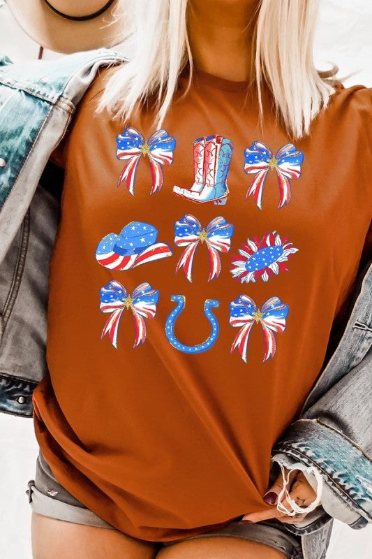 Show your American spirit with our standout America Bow Cowgirl Graphic Tee. This Western-themed patriotic shirt celebrates USA pride with distinctive flair. Perfect for Independence Day celebrations, this 4th of July tee combines country western style with star-spangled enthusiasm that demands attention.