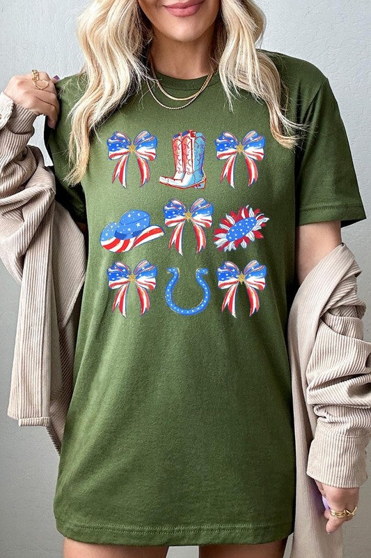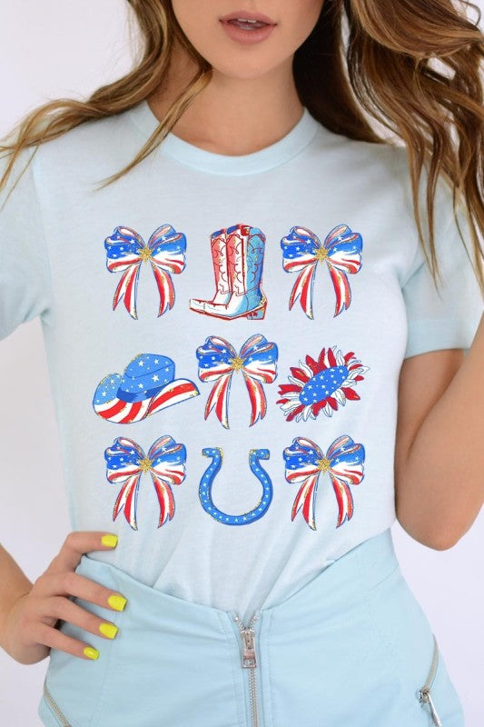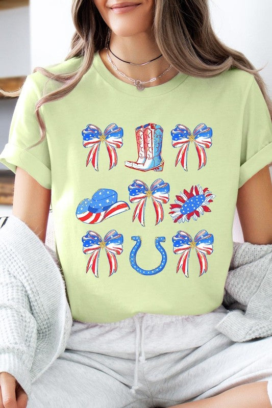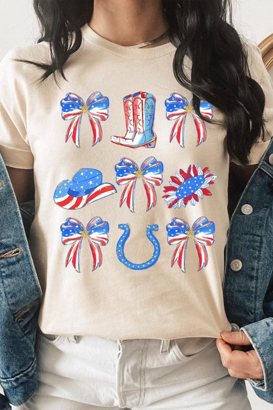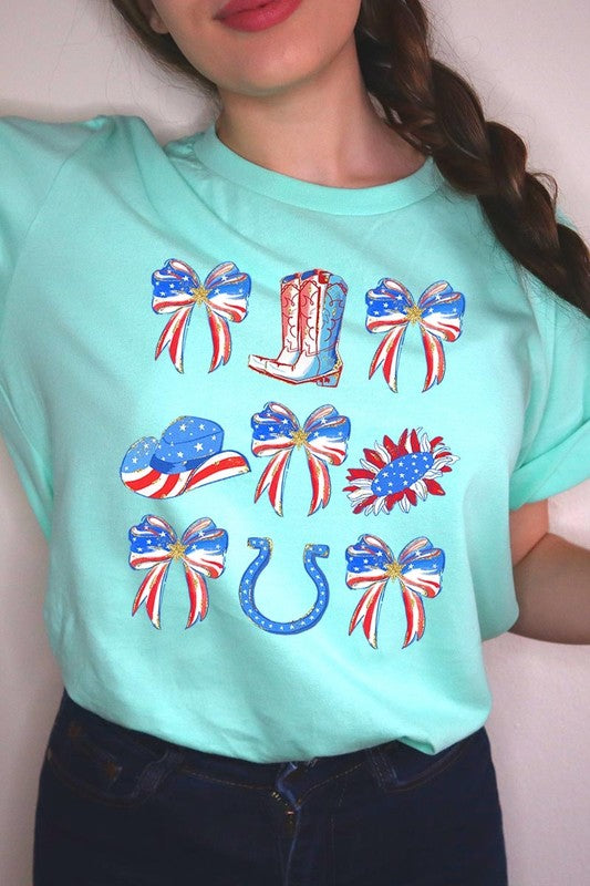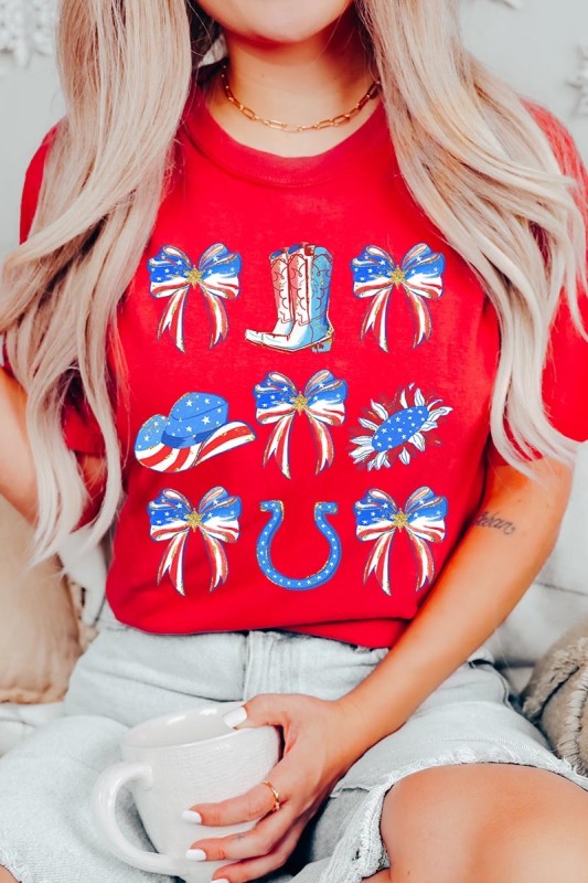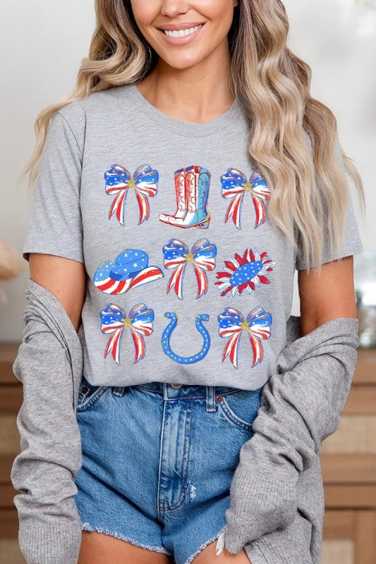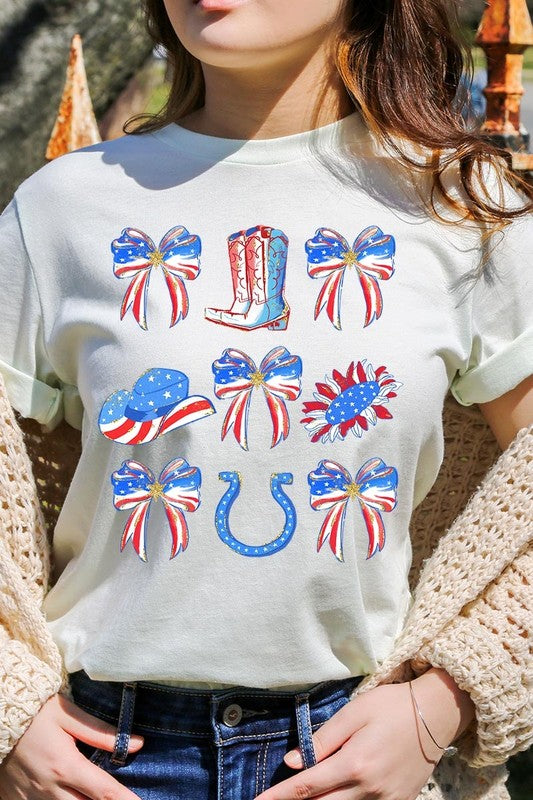 Show your American spirit with our standout America Bow Cowgirl Graphic Tee. This Western-themed patriotic shirt celebrates USA pride with distinctive flair. Perfect for Independence Day celebrations, this 4th of July tee combines country western style with star-spangled enthusiasm that demands attention.
